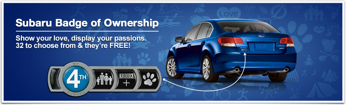As a Subaru owner, you know that your Subaru vehicle is more than just a means of transportation; it's an important part of your life. Display your Subaru pride, as well as other passions you have in your life and other achievements, with a genuine Subaru Badge of Ownership, available from Carter Subaru Shoreline. The Subaru Badge of Ownership attaches to the back of your Subaru vehicle (or any metal surface); in addition to indicating where in the number of Subaru vehicles you've owned this one falls, the Subaru Badge of Ownership can be personalized with up to five lifestyle icons that reflect your interests, hobbies, or achievements. There are thirty-two lifestyle icons to choose from, including family, camping, environment, golf, marathon, education, and more--and the number is always growing! Let others know that you're proud to own a Subaru--and show off other things you love. Get your Subaru Badge of Ownership today!